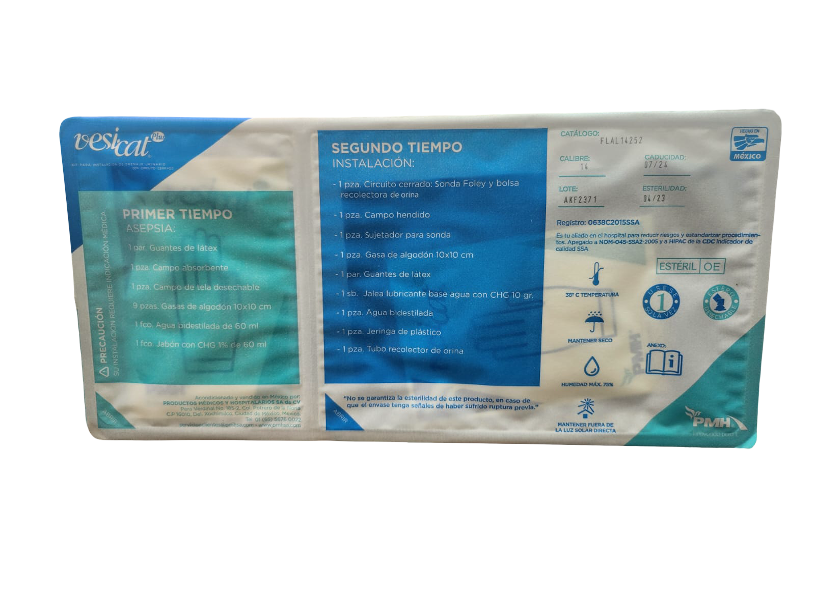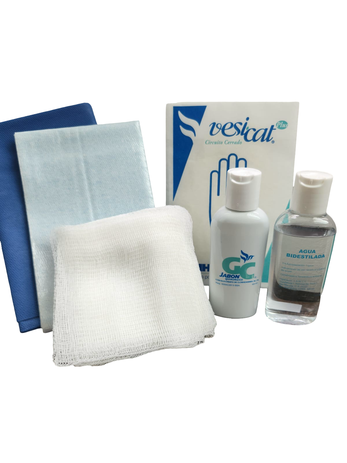 El Kit Vesicat Plus es una solución integral, estéril y desechable diseñada para la instalación segura de sondas urinarias con circuito cerrado, cumpliendo con la NOM-045-SSA2-2005 y las recomendaciones de la CDC (HICPAC).